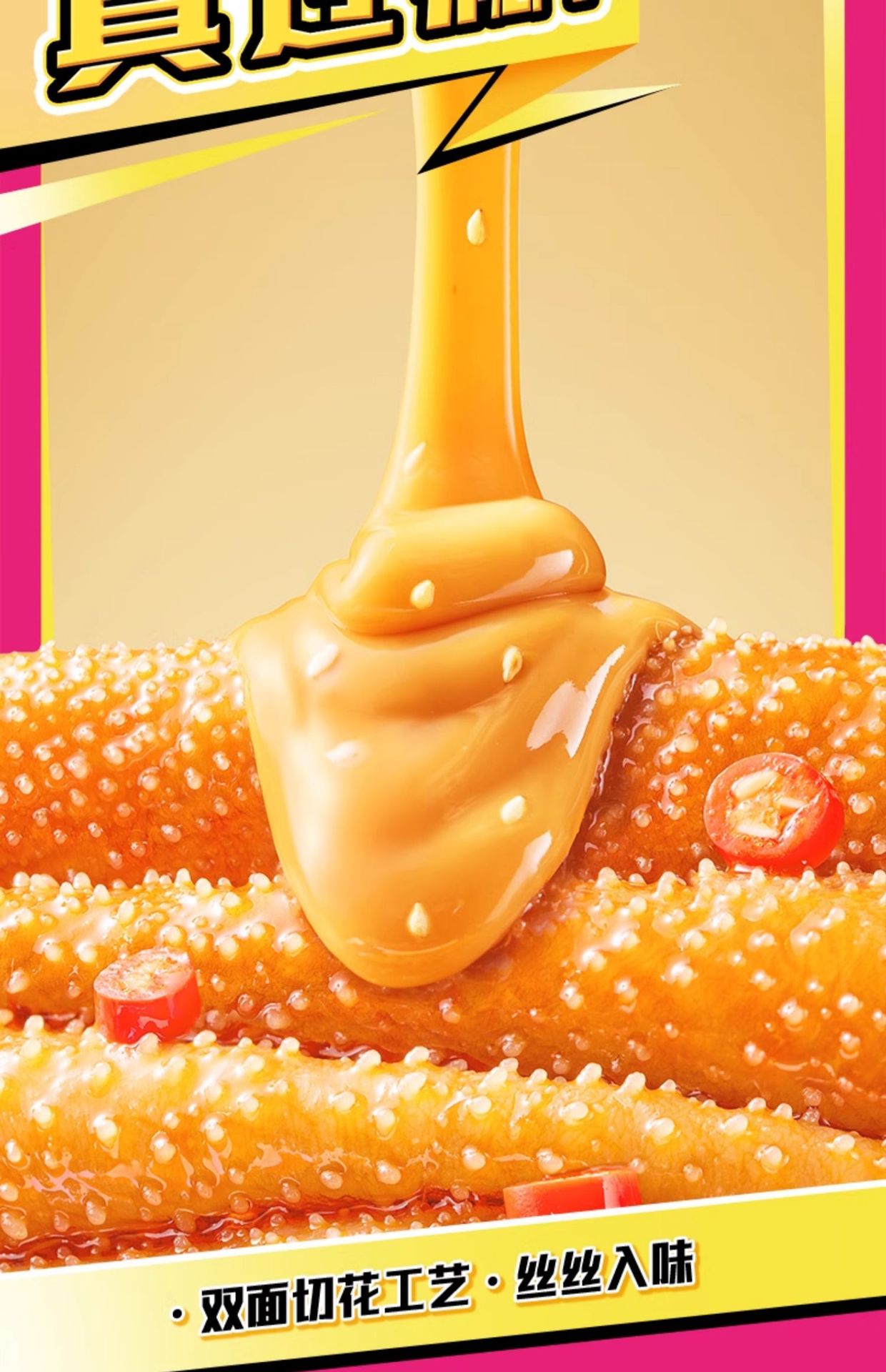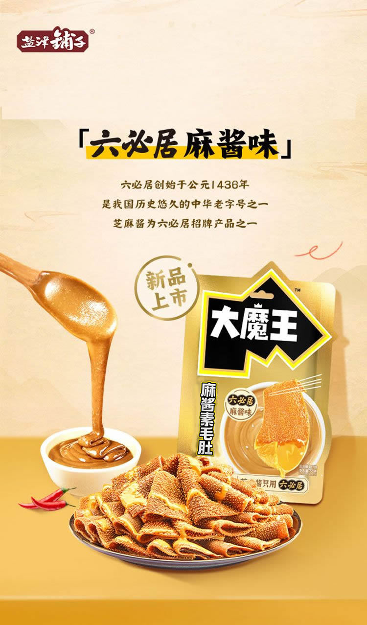 盐津铺子大魔王香菜麻酱素毛肚50g送20g六必居麻酱素毛肚零食袋装