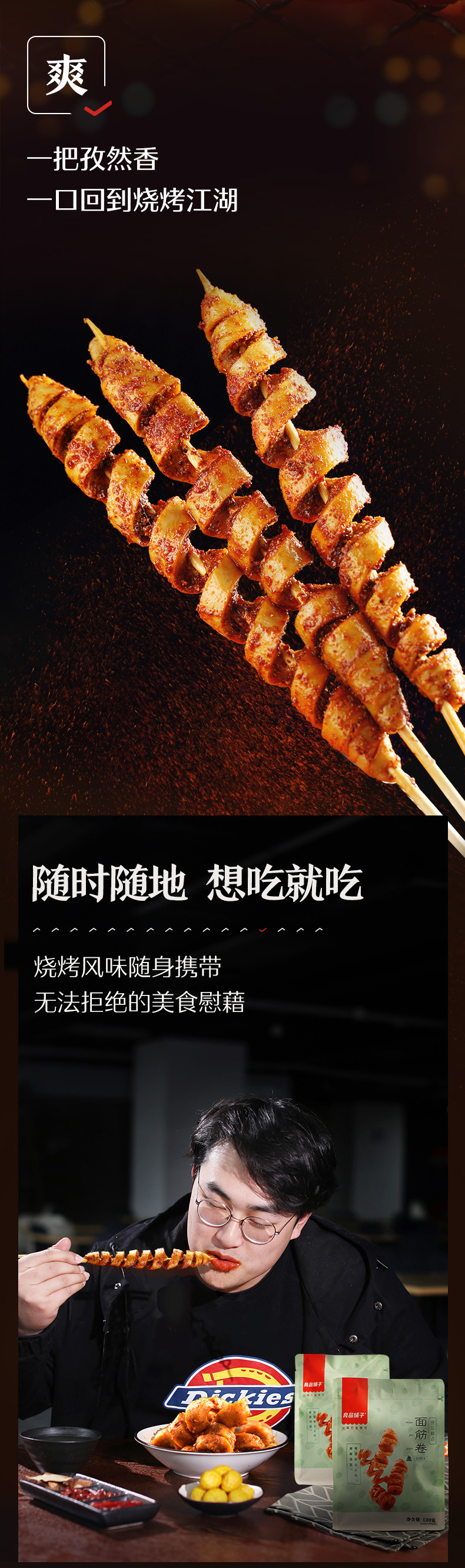 良品铺子面筋卷烧烤味120g网红辣条豆干休闲零食怀旧儿时小包装