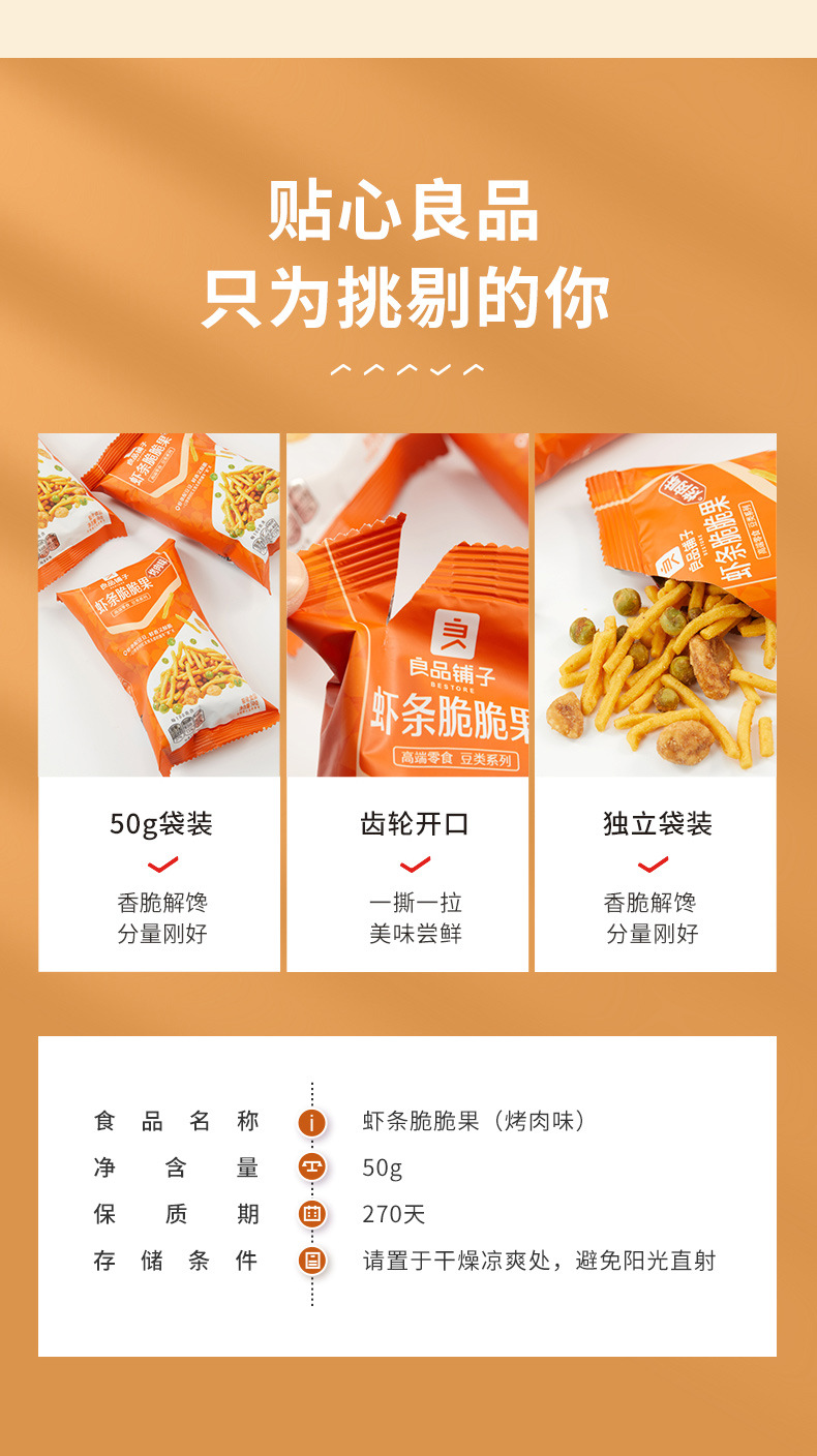 良品铺子虾条脆脆果50gx5包牛肉味兰花豆蚕豆炒货儿时怀旧小零食