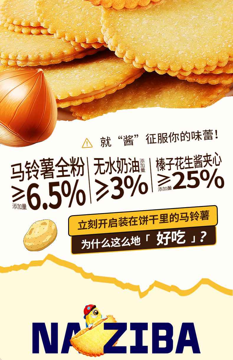 naziba纳滋宝榛子花生酱夹心薄脆饼干72g包办公室休闲小零食