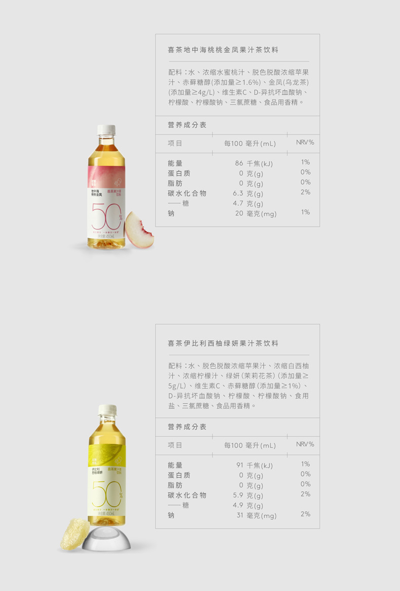 喜茶地中海桃桃金凤果味茶饮料水蜜桃夏日茶饮450ml*15瓶整箱