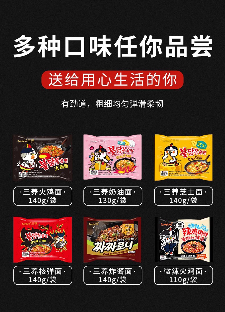 三养火鸡面黑色经典包装140g超辣炸酱拌面过鸡年味方便面韩式泡面