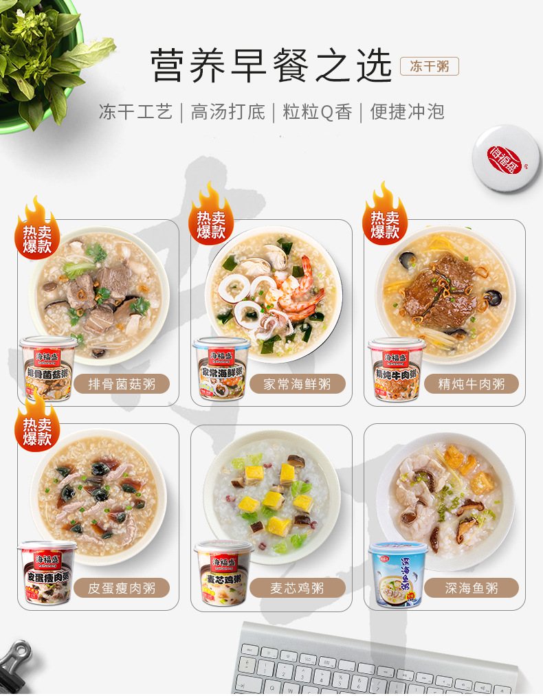 海福盛速食粥皮蛋瘦肉粥 早餐代餐多种口味冲泡方便即食米粥