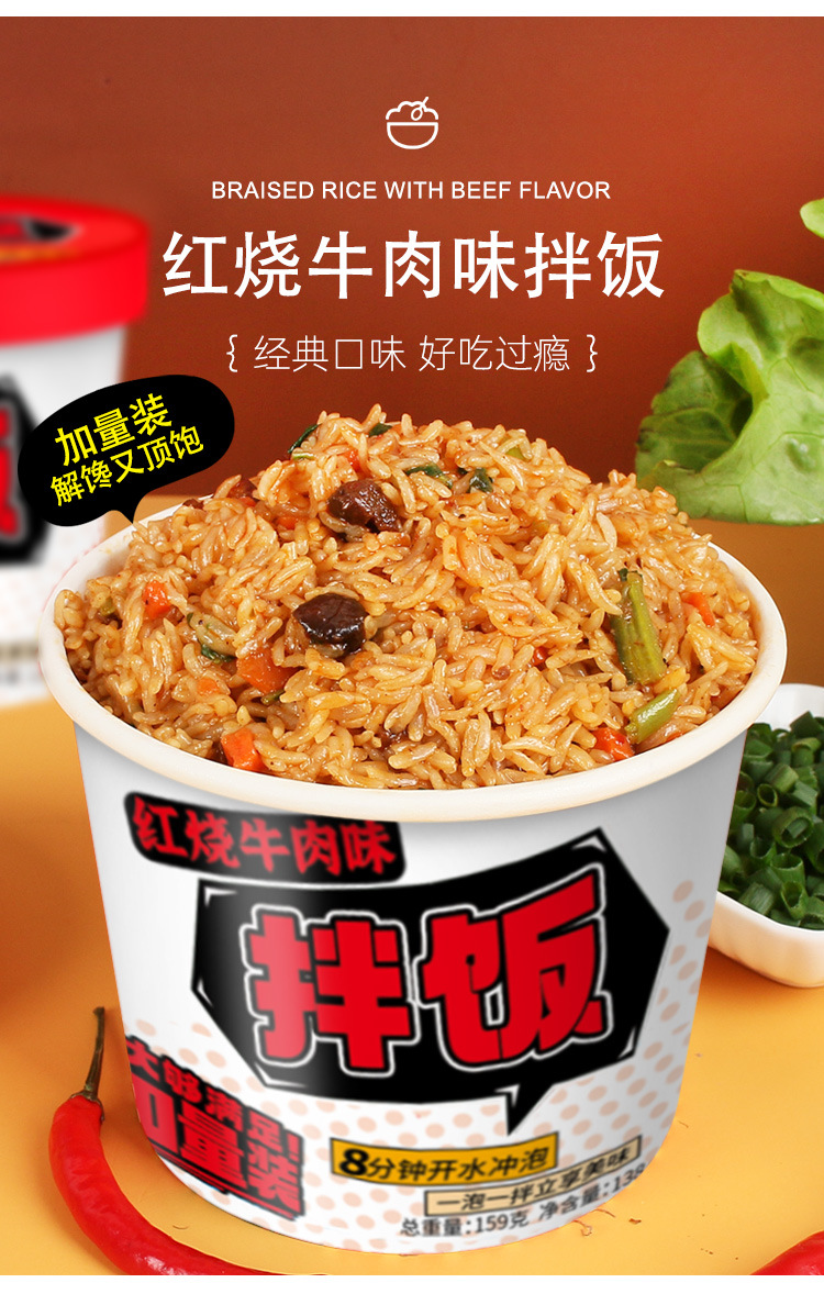 红烧牛肉味自助米饭大份量12桶装干拌饭免煮冲泡方便速食整箱