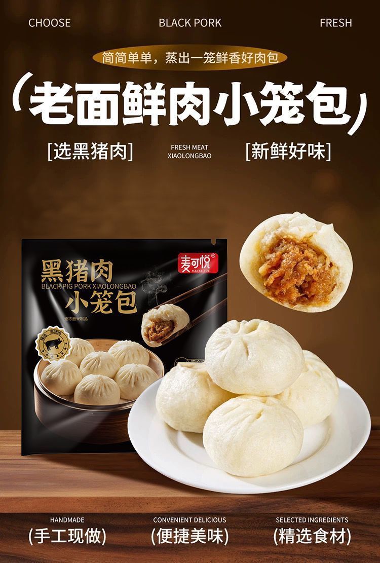 黑猪肉小笼包嵊州风味老面鲜肉包子学生早餐半成品速食家庭装面点