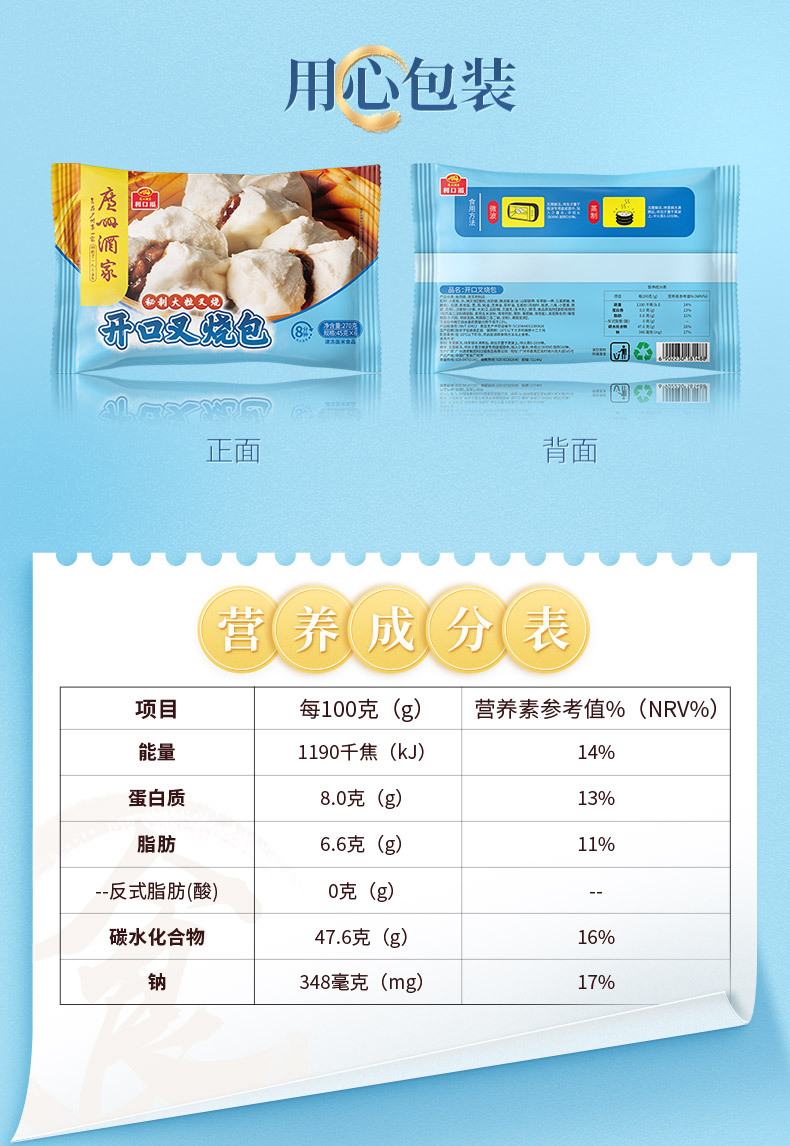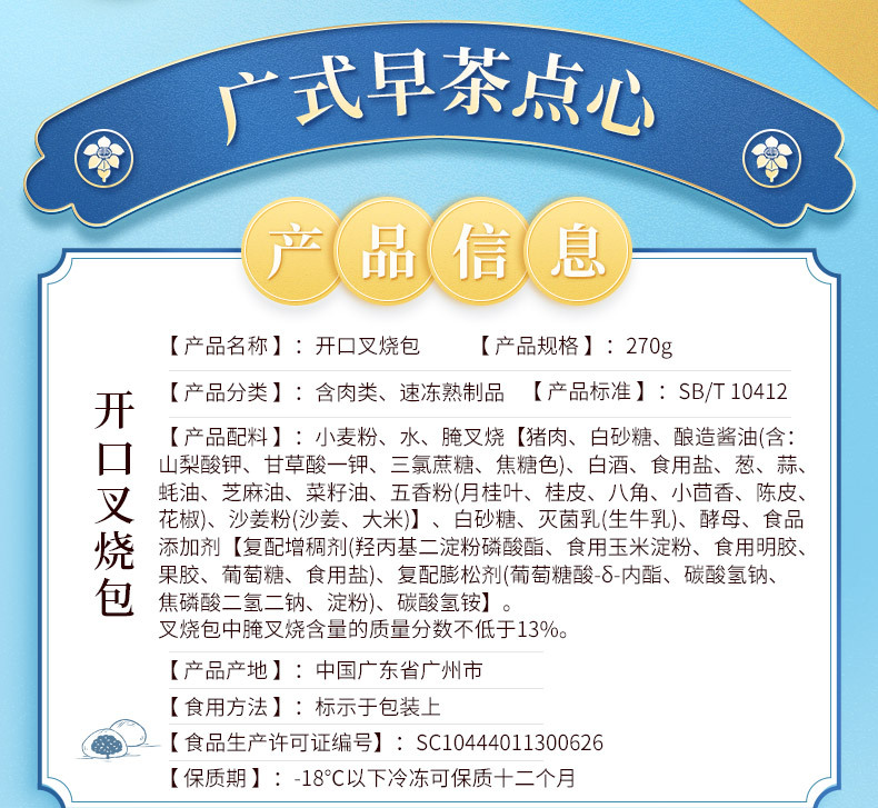 广州酒家利口福开口叉烧包270g广式早茶点心学生早餐方便速食冷冻