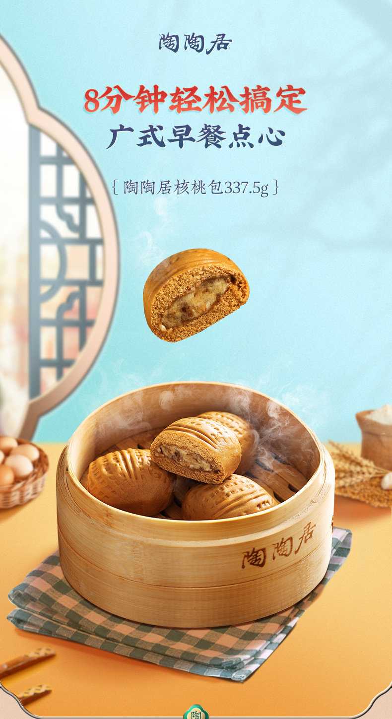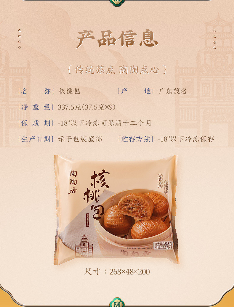 陶陶居核桃包337.5g学生早餐广式早茶点心商用即食早餐