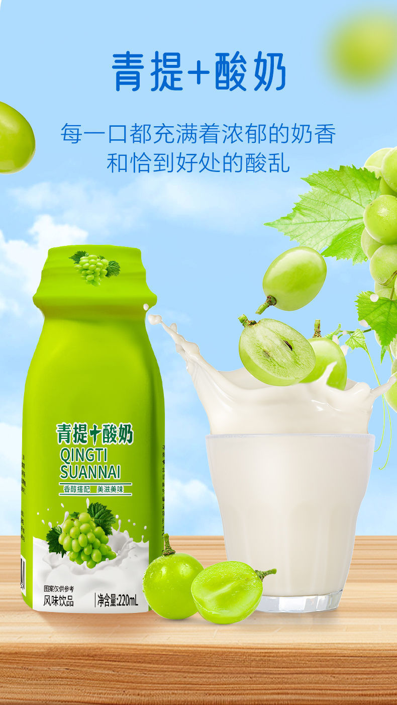 220ml*10瓶青提风味酸奶营养早餐风味整箱解腻饮料饮品