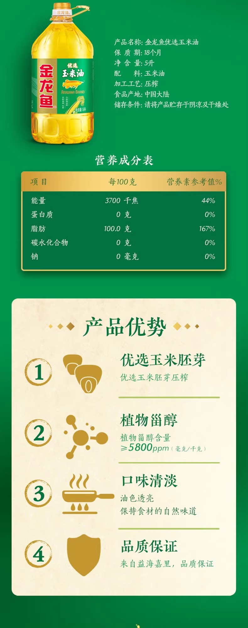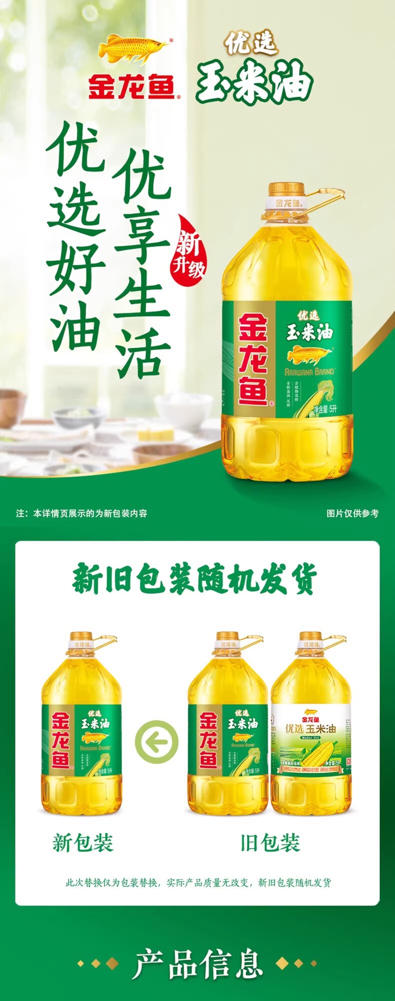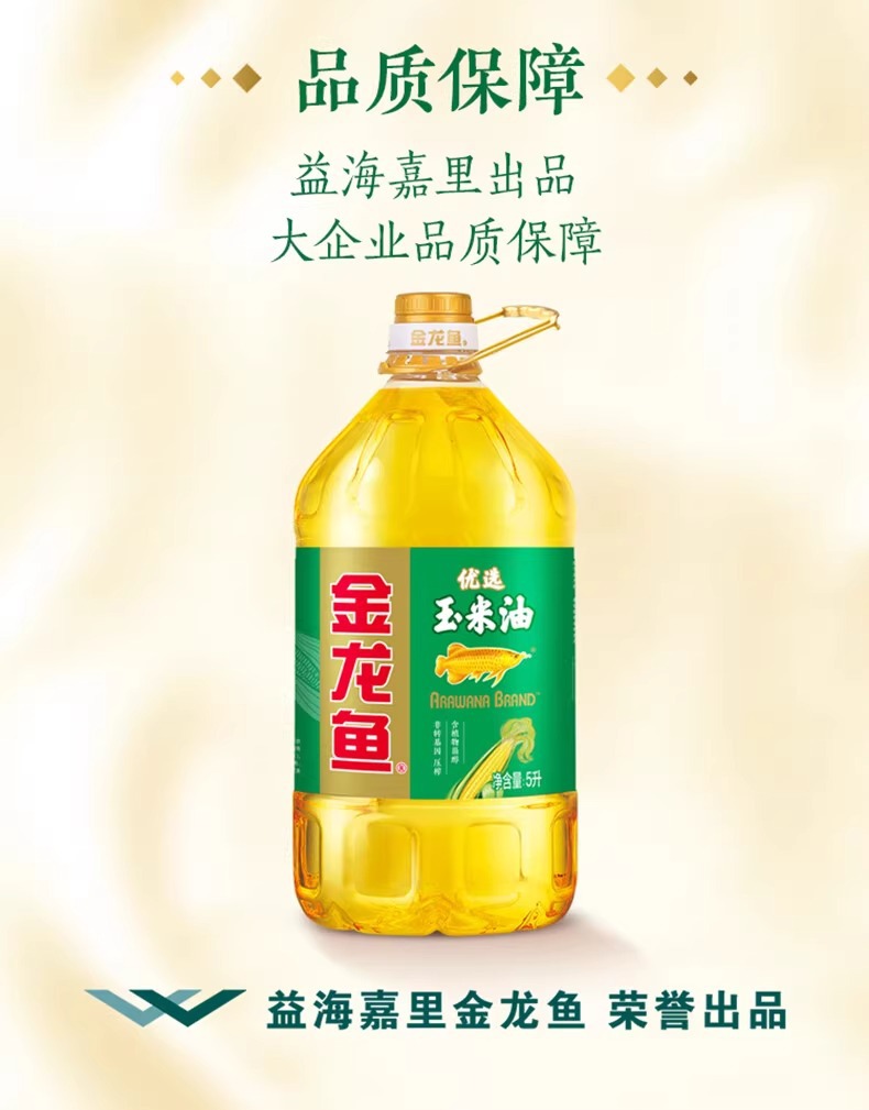 金龙鱼优选玉米油5L 优质胚芽压榨植物油食用油家庭桶装